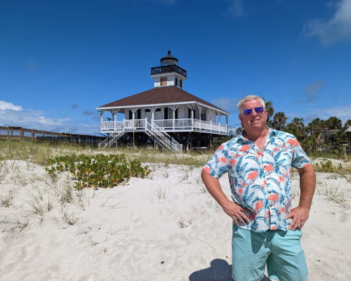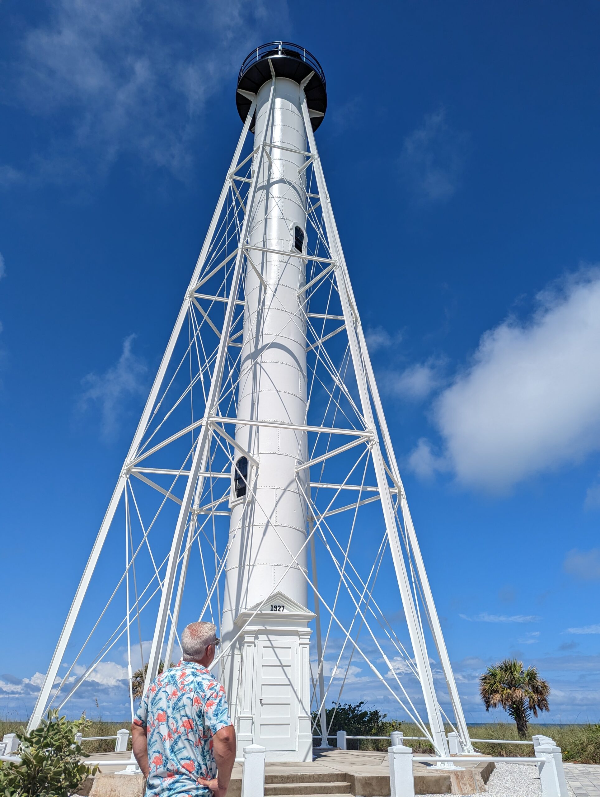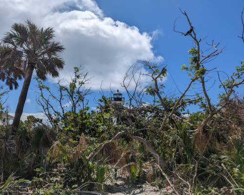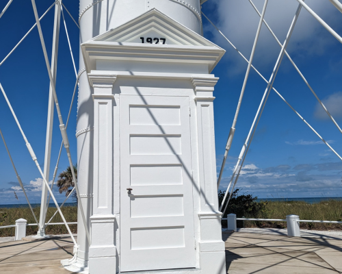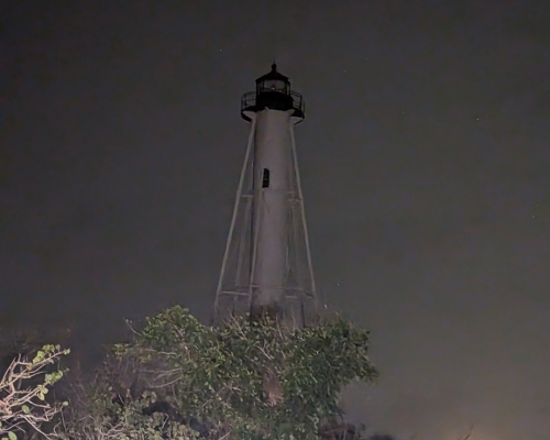Through Facebook I found out that the Gasparilla Lighthouse was going to open again for climbs after it had been damaged from hurricane Ian. I was thrilled by this news & asked Quin to take a trip down there with me so we could conquer another lighthouse together. We both made alternative arrangements with our clients and took off for an overnight trip. The 3.5 hour journey, one way, was too much for us to do in one day so we found a cute hotel on the island to stay in & then went out to eat. After dinner a violent lightning storm came rolling in with a soft rain. It was really a sight to see. We drove around the island to watch it and headed over to the lighthouse to see it glow in the light from the lightning bolts. I was enjoying the rain but wished that it would be gone by morning so we could climb the lighthouse.